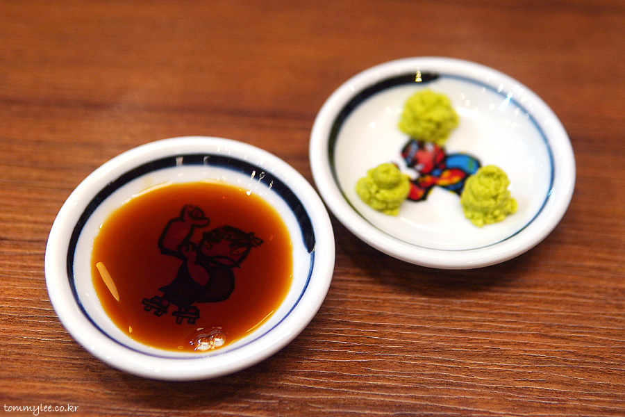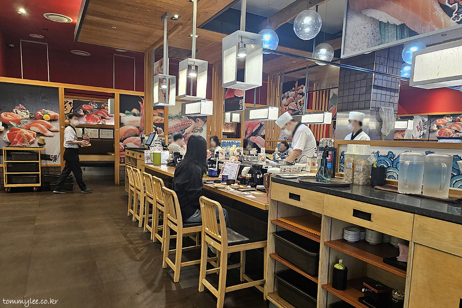 회전초밥집다운 분위기를 느껴보시라고.. 돌아가는 레일 짧게 촬영해 봤답니다.. 평일이고 손님이 많은 시간대는 아니어서 회전하는 초밥 접시들을 구경하는 재미는 즐기지 못했다는..