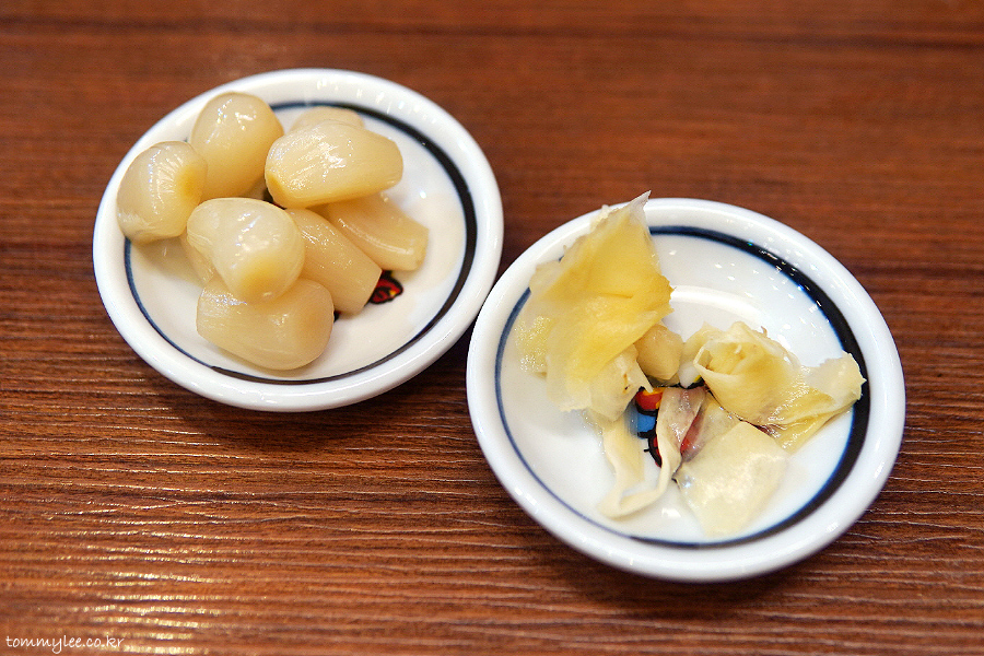 초밥 도착 전에 가리랑 락교도 준비해 보네요.. 락교는 레일을 돌고 있는 통을 집어서 담은 후 다시 올려 보내면 됩니다..