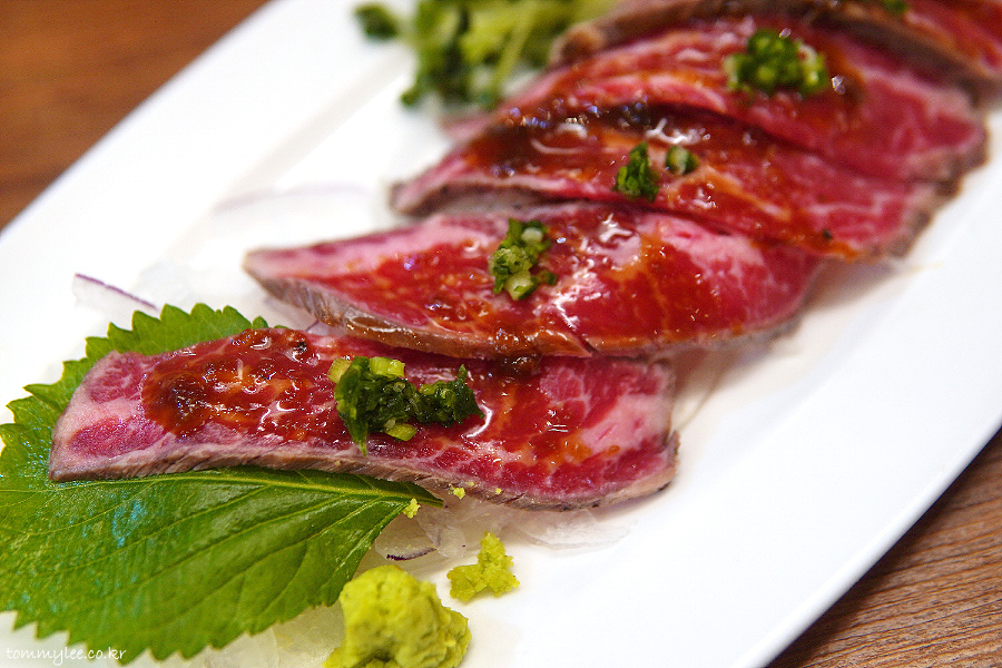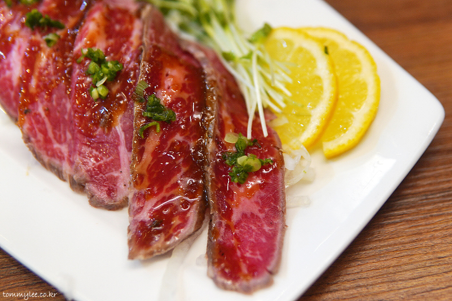 평소에는 갓덴에서 참다랑어 사시미를 주로 먹는데 혼마구로 참치회를 최근에 지인분께서 물리게 드신 관계로.. 오늘은 특별히 와규타타키로 초이스해 봤네요..