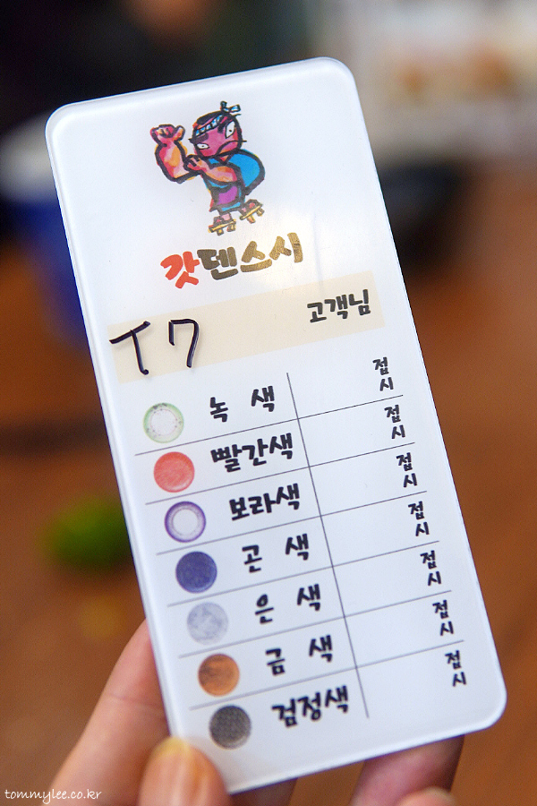 담당서버에게 정산을 요청하면 이렇게 테이블 번호가 적힌 카드를 주신답니다.. 돌아가는 초밥을 오늘도 먹진 못했네요.. 한두 개는 먹을 수 있었는데.. 살짝 아쉽..
