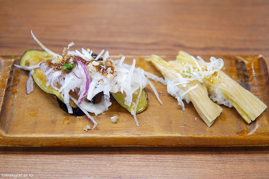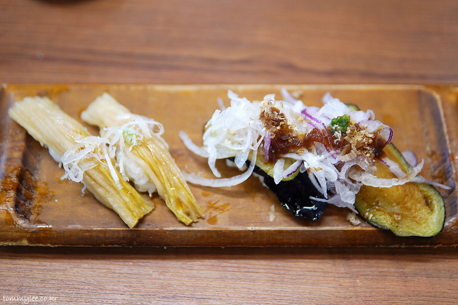 실속 10P에서 맘에 들었던 리퀘스트 메뉴.. 튀긴가지랑 묵은지참기름.. 튀긴가지에 소스랑 양파 듬뿍 이라 맛나고요.. 묵은지 참기름은 네타도 크고 이색적인 맛이라 좋네요..