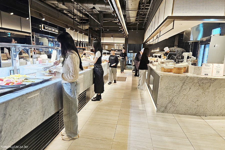 바로 샐러드바로 출동입니다.. 주말이라 많은 손님들로 붐비고 있었던 빕스 샐러드바의 풍경이 되겠고요..