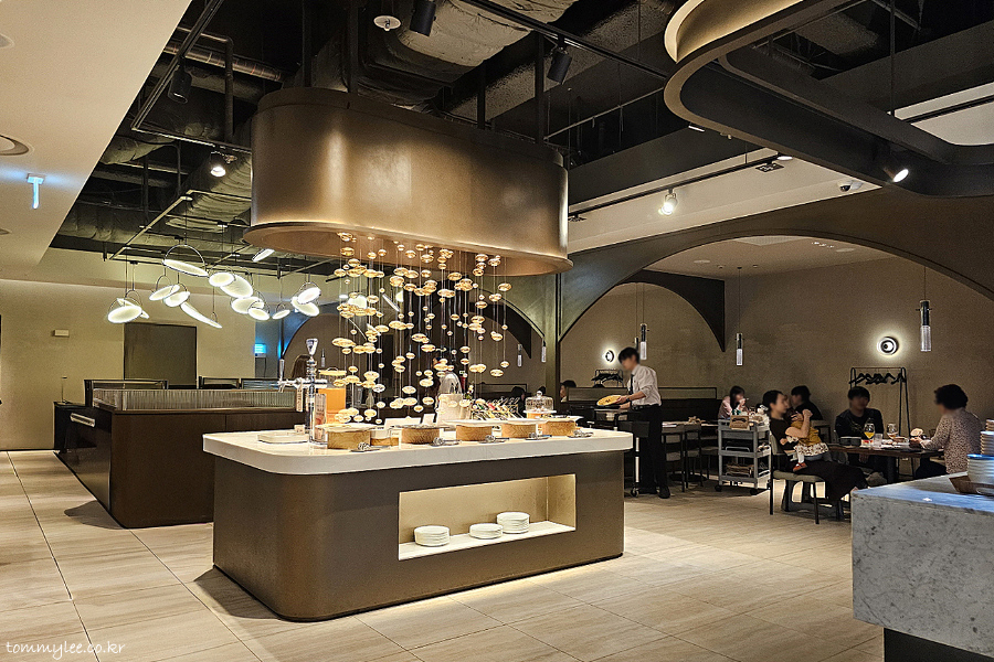 샐러드바가 매우 가까운 위치여서 좋긴 했는데.. 많이 어두워서 사진 찍기엔 좋지 않았던 테이블이네요..