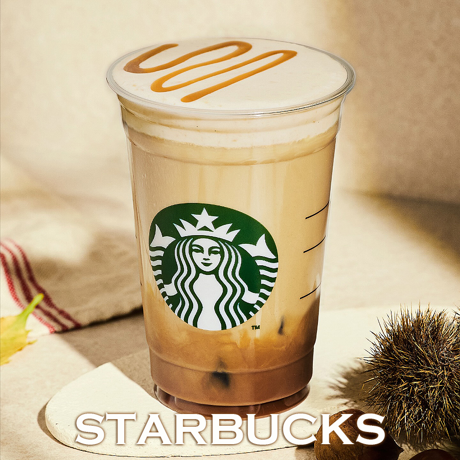 마롱 에스프레소 크림 라떼는.. 스팀밀크에 에스프레소 2샷 마롱 에스프레소 크림과 카라멜 드리즐로 구성된 국내산 밤을 활용한 시즌 메뉴..