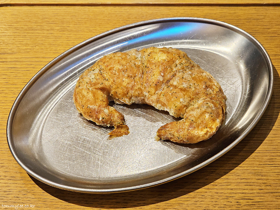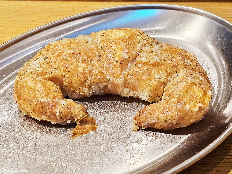 갈릭버터 옷이 크루아상에 스며들어 다른 크루아상보단 많이 눅눅한 편이라 특유의 텍스처를 즐길 수가 없긴 한데..
