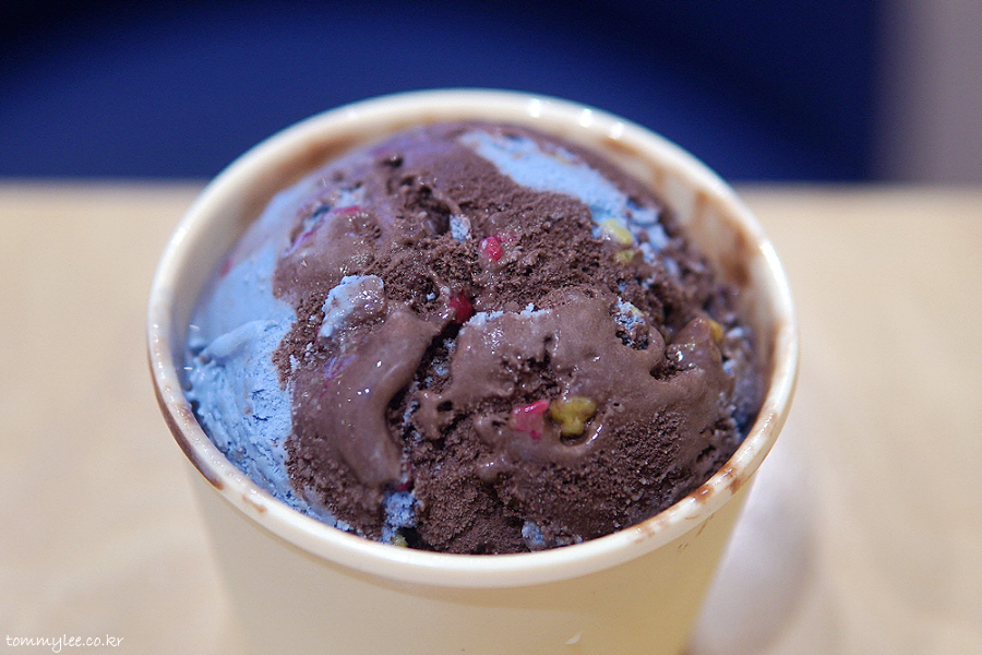 아이스크림의 조합부터가 지극히 할로윈스러운 컬러인 데다.. 팝핑캔디가 톡톡 터져서 축제 분위기도 나고 해서 할로윈 시즌에 매우 어울리는 플레이버..