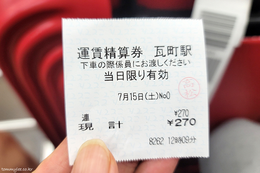 카와라마치역에서 역무원에게 구입한 전차표입니다.. 운임정산권 카와라마치역이라고 쓰여있네요.. 전차운임은 270엔으로 저렴하진 않았어요.. 그나저나 너무 숨차다고 막.. 타카마츠여행 처음부터 쉽지가 않네요.. 리무진버스 만차가 아니었더라면 이렇게 뛸 일도 없었을 텐데.. ㅠ.ㅠ..