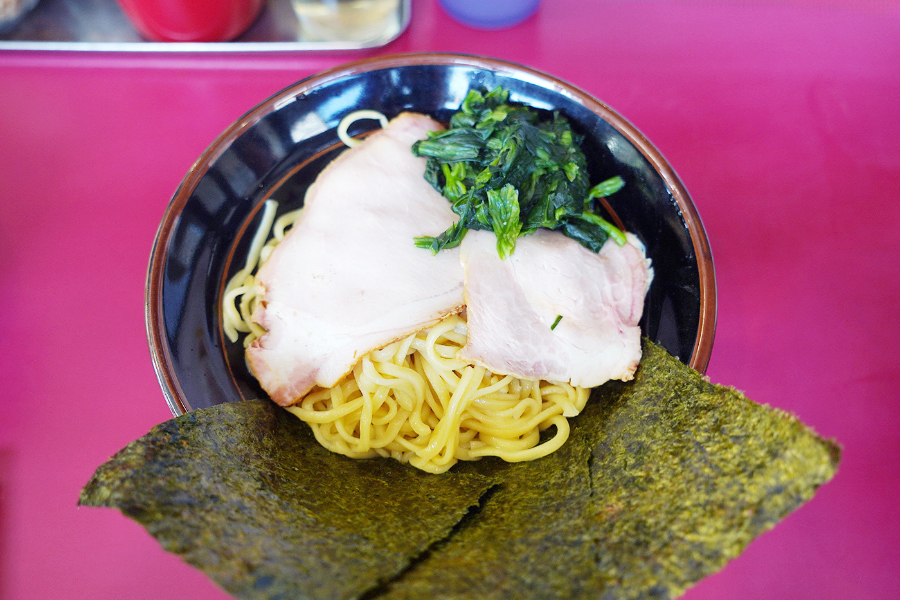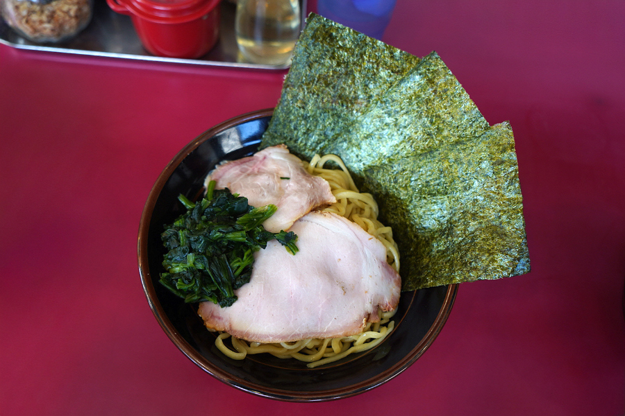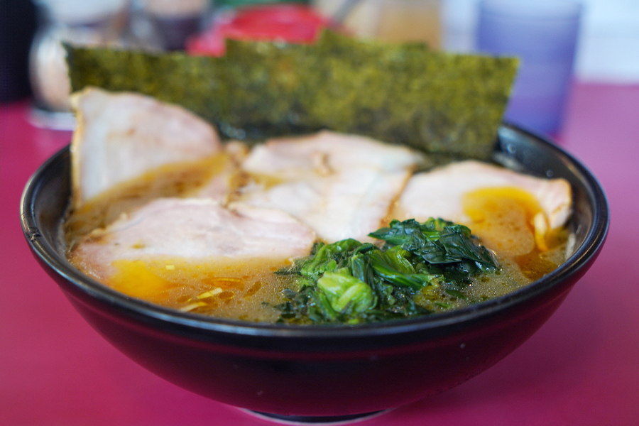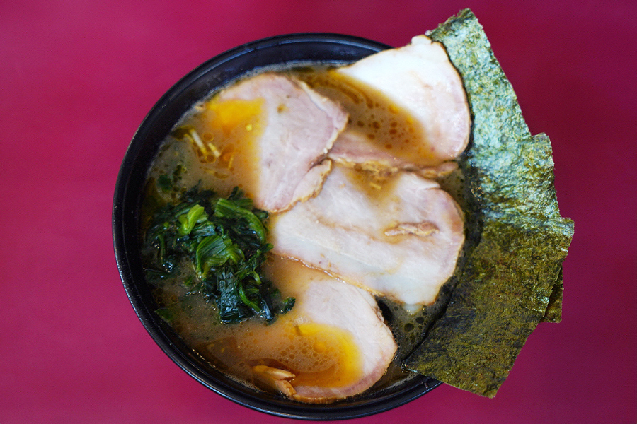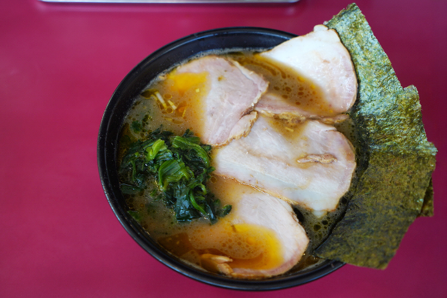 차슈멘과 기본 라멘 차이가 130엔이라 이건 차슈멘이 가성비라면서 차슈멘을 주문하신 지인분.. 차슈가 라멘 전체를 덮고 있는 모양새이고요.. 저는 차슈보단 이에케 라멘의 특징인 호렌소(시금치)가 더 인상적이었던.. 시금치를 진짜 듬뿍 올려줘서 깜짝 놀랐어요.. 요시무라야 사장님이 좋아해서 올린다는 김도 2장이나.. ㅋㅋㅋ..