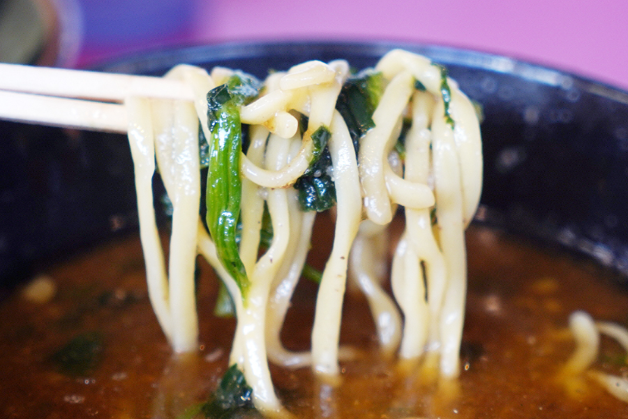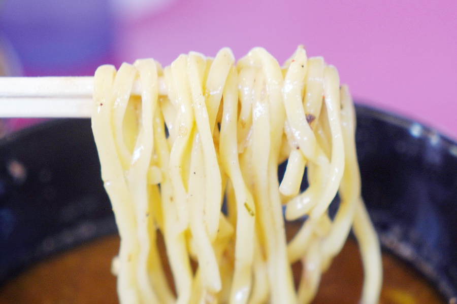 가장 놀랐던 게 바로 이 극태면.. 면이 색이 진하고 두께가 엄청 두껍습니다.. 일반 라멘에 이렇게 두꺼운 면을 쓰는 곳은 진짜 없거든요.. 엄청 특이하긴 하네요.. 이래서 라면에 츄모리, 오모리 버튼이 아예 따로 있었구나 싶었습니다..