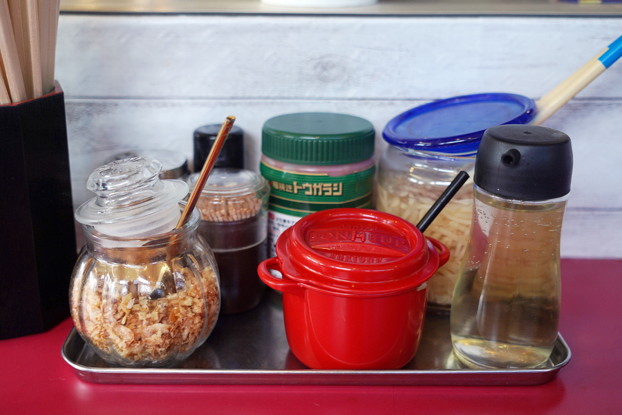 토핑 : 半熟たまご 한쥬쿠타마고 80엔, きくらげ 키쿠라게 50엔, ほうれんそう 호렌소 80엔, のり 노리 50엔 / 수량한정 토핑 : 辛ねぎ 카라네기 100엔, 茎わかめ 쿠키와카메 50엔, 青ねぎ 아오네기 50엔, 背あぶら 세아부라 10엔, たまねぎ 타마네기 20엔..