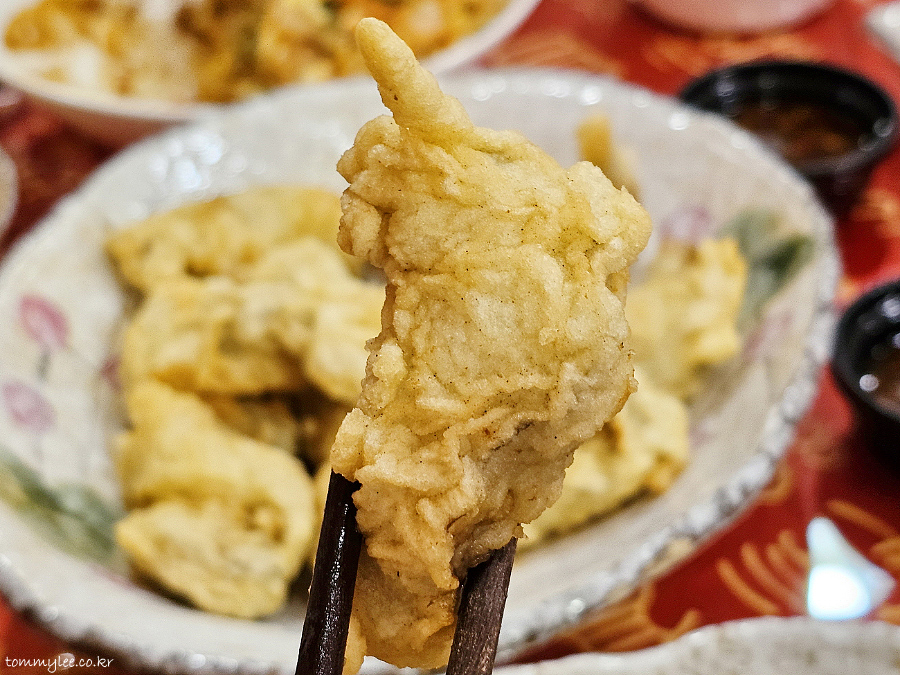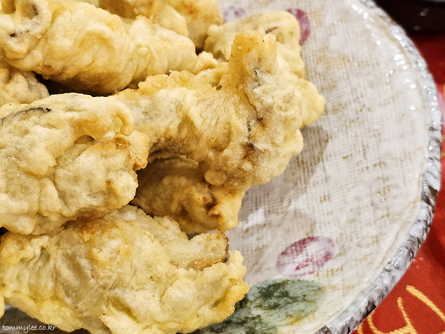 여기 다른 튀김들은 튀김옷이 다 이 스타일이고 다 똑같은데요.. 뭐랄까 굴과의 조합이 가장 이상적인 느낌이랄까..
