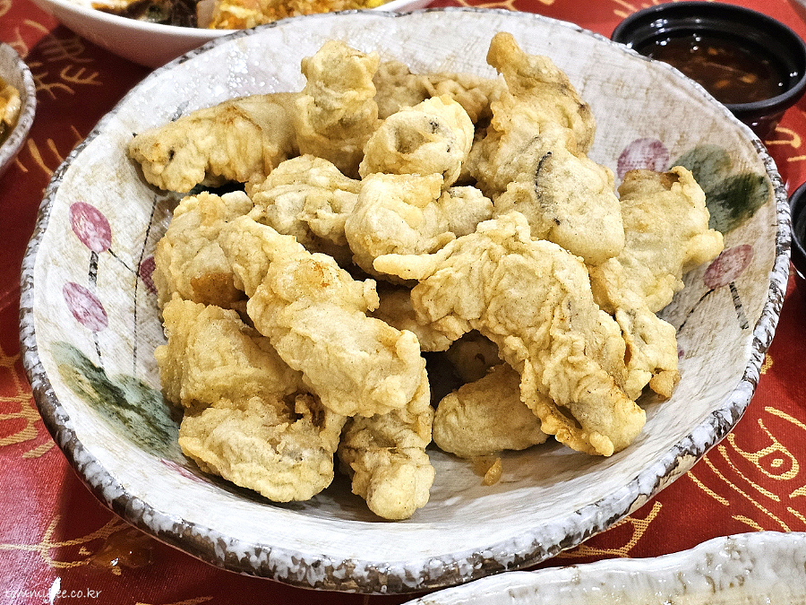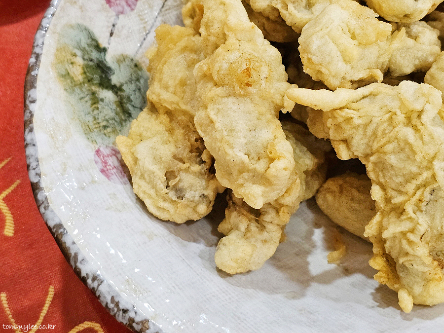 굴은 매일 통영에서 직접 공급받는다고 하십니다.. 굴튀김은 튀김옷은 안 뜨겁더라도 안쪽의 굴이 많이 뜨겁습니다.. 화상의 위험이 다분하니 한 입에 다 넣지 않으시는 걸 강력히 권하고요..