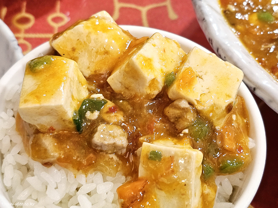 여긴 리얼 두반장이 들어가서 좋음.. 지인분께서는 장에 들어가는 콩이 그대로 보인다며 신기해하셨어요.. 보통 마파두부에 콩 알갱이가 있진 않으니까..