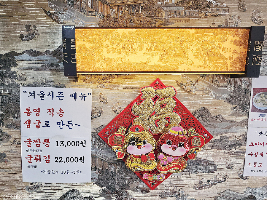겨울 시즌 메뉴.. 통영 직송 생굴로 만든 굴짬뽕 13,000원, 굴튀김 22,000원.. 민생회복 소비쿠폰 사용가능 매장..