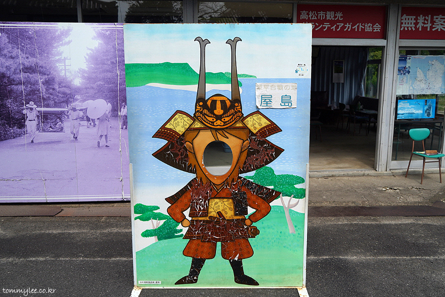 야시마 방문 인증샷 찍는 곳.. 겐페이전투지였던 야시마인만큼 요시츠네가 되어 인증샷을 담아볼 수 있습니다.. NHK 대하드라마 요시츠네가 방영된 게 벌써 20년 전이기 때문에 많이 낡아 있긴 하네요..