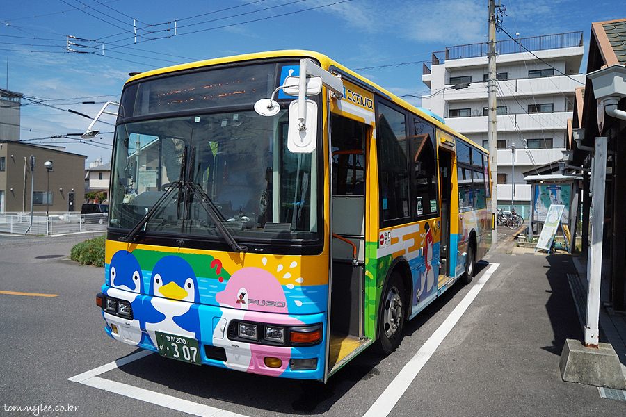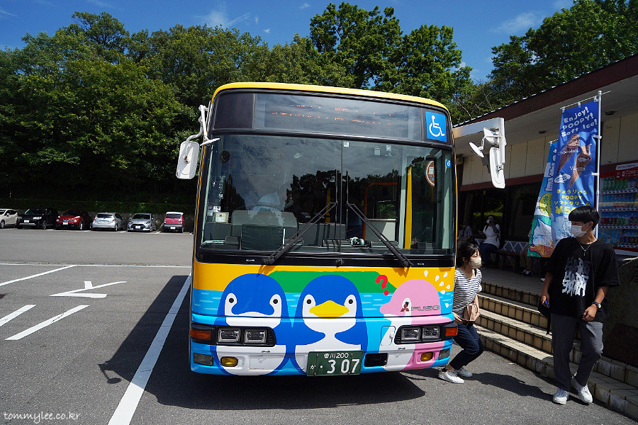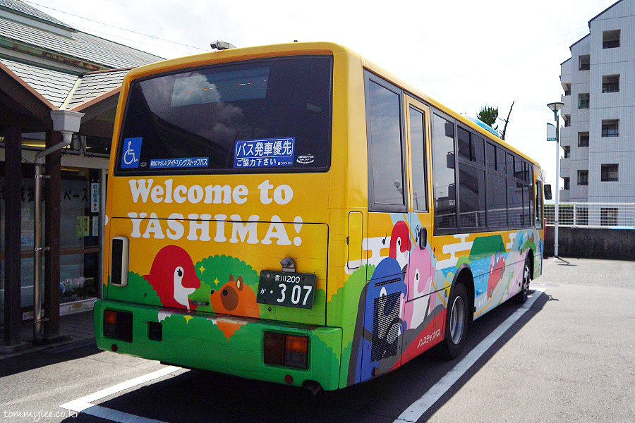 WELCOME TO YASHIMA.. 셔틀버스에 펭귄이랑 너구리 그림이 있어서 누가봐도 이건 야사미 관광용 셔틀버스임을 알 수가 있었습니다.. ㅡㅡㅋ..