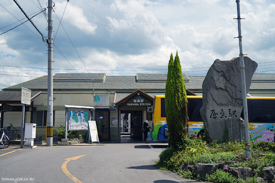 이번 일정의 시작은 JR야시마역.. JR코토쿠선의 기차역입니다.. 저희는 JR을 타러 온 건 아니고 야시마전망대 가는 셔틀버스를 타러 왔어요.. 코토덴 야시마역이랑 JR 야시마역 2곳이 있는데 코토덴 역이 야시마랑 더 가깝습니다..