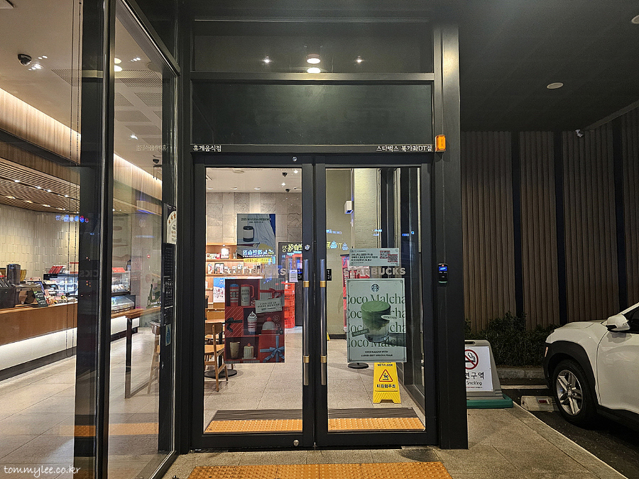 STARBUCKS.. BUKGAJWA DT.. 스타벅스 북가좌디티점.. 영업시간 : 07:00~22:00..