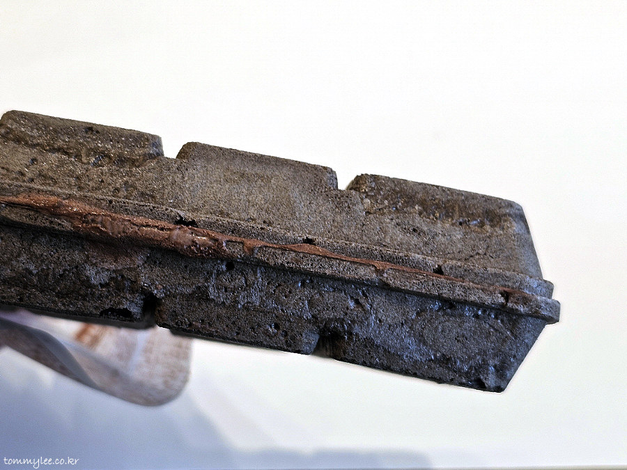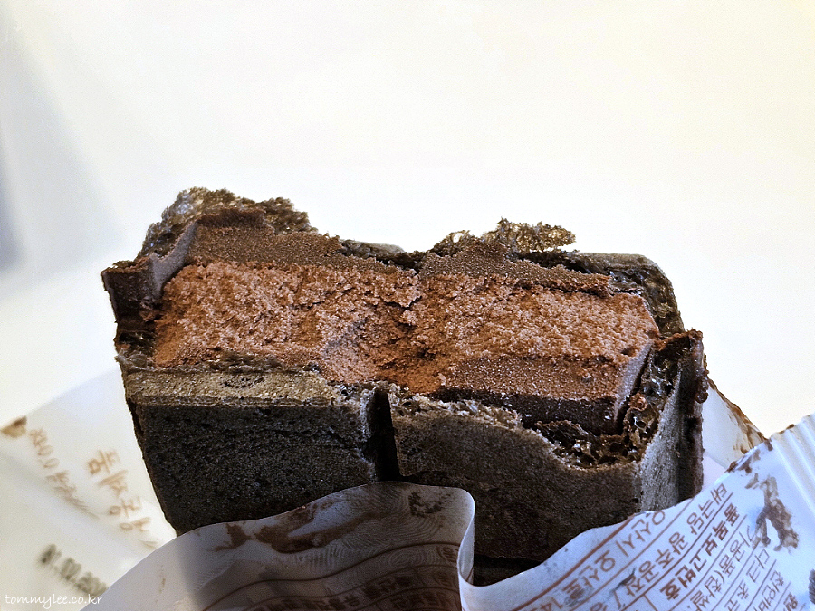 모나카 반을 쪼개보면 이런 느낌.. 초콜릿 아이스크림처럼 보이지만 딸기맛이 착실하게 녹아들어 가 있긴 해요..