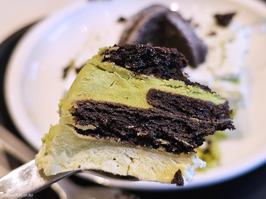 말차 마스카포네 생크림에 말차 가나슈, 블랙 초코쿠키 조합으로 보시면 되겠네요..
