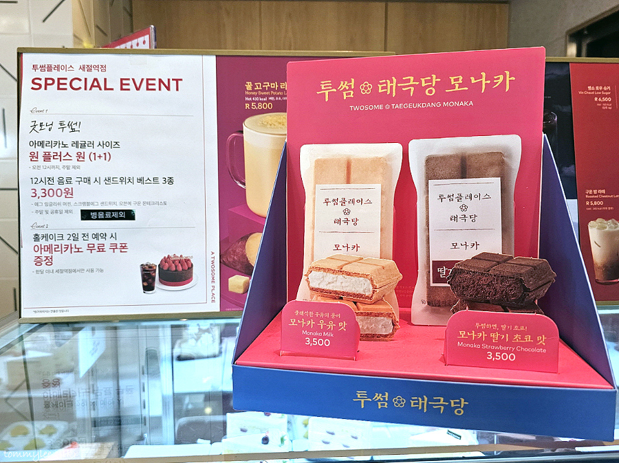 지인분께서 투썸 태극당 모나카를 먹고 싶다고 하셔서 왔는데.. 우유맛은 솔드아웃이고 딸기초코맛만 있다고 하네요.. 재입고는 어려울 것 같다는 매니저님의 답변..