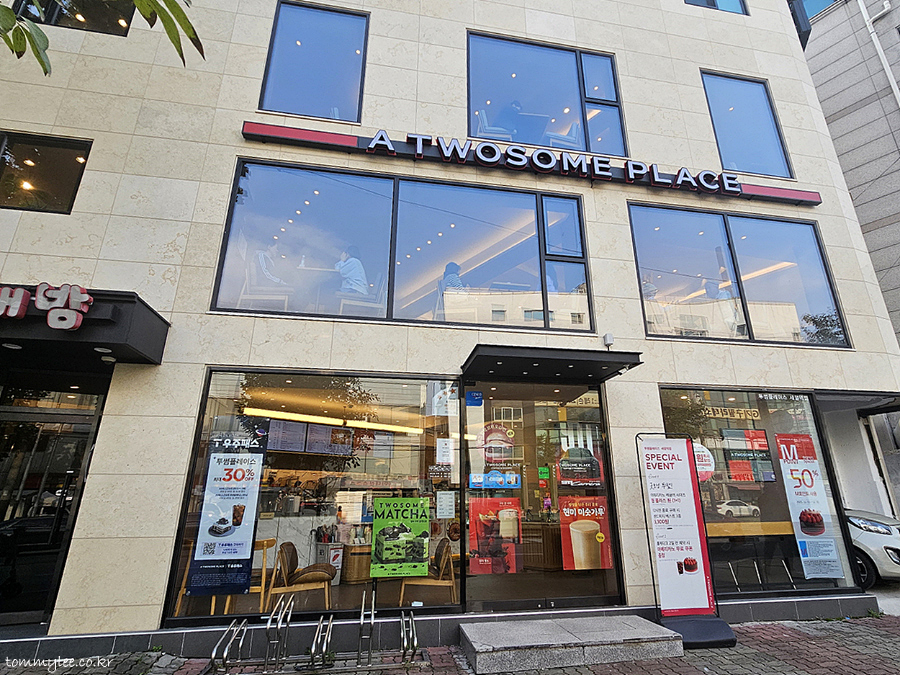 A TWOSOME PLACE.. SAEJEOL STATION.. 투썸플레이스 새절역점.. 영업시간 : 09:00~22:00, 주말 ~23:00.. 민생회복 소비쿠폰 사용가능 매장입니다..
