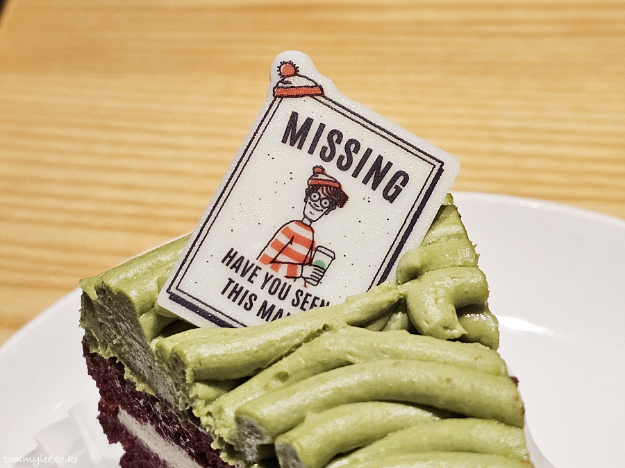 윌리의 레드 스트라이프 스웨터 느낌으로 재현된 레드 벨벳 케이크를 치즈케이크 위에 올려 어렌지한 케이크 메뉴.. 은근 크리스마스 분위기가 나긴 하네요..