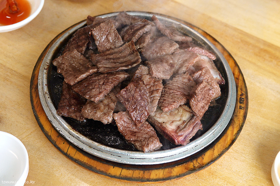 소금에 살짝 찍어서 냠냐므.. 고급진 기름맛 뿜뿜.. 갈비 본연의 맛을 있는 그대로 즐길 수 있는 훈훈한 메뉴..