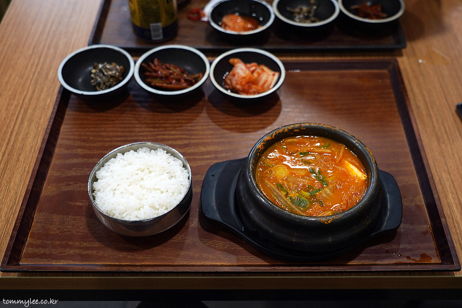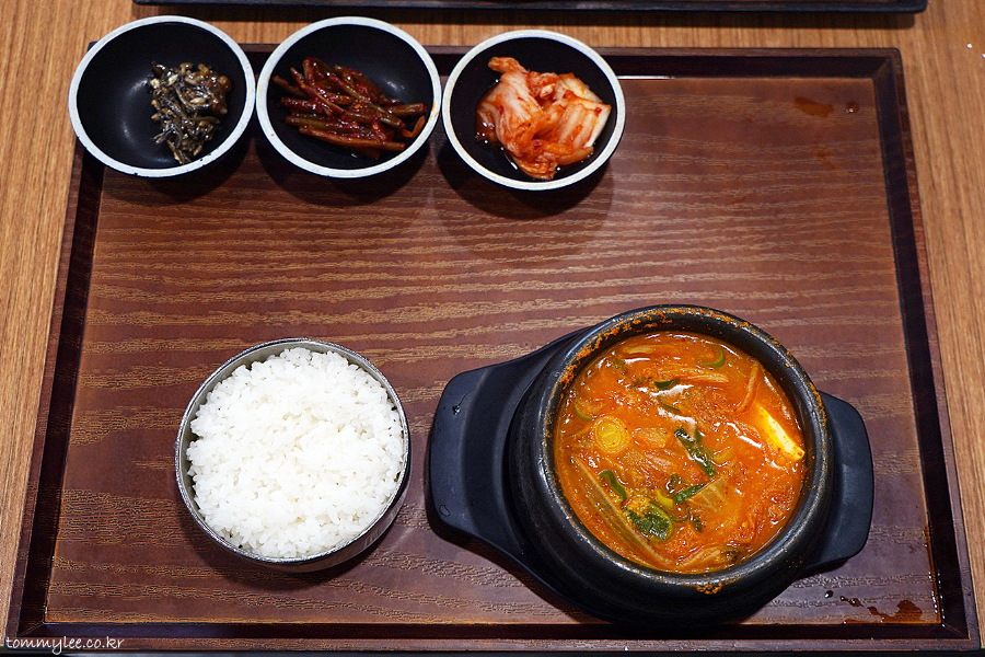 전에 홍콩으로 출국하기 전에 왔었는데요.. 그때 해물 순두부찌개를 먹었기 때문에 이번엔 돼지고기 김치찌개를 주문해 봤습니다.. ㅡㅡㅋ..