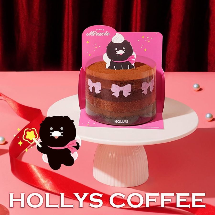춘장이라고 불리우는 블랙춘식이의 초콜릿 케이크.. 요정 춘식이의 마법으로 탄생된 할리스와의 콜라보인만큼 윈터 미라클이라고 쓰여있는 핑크색 박스에 들어간 케이크.. 케이크 펜스에도 핑크색 리본을 두르고 있고요..