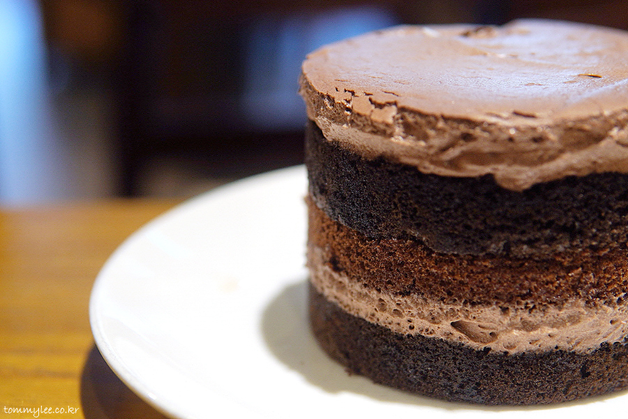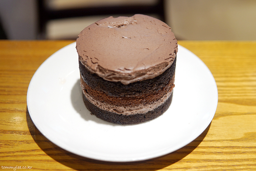 다크 초콜릿 시트에 초콜릿 크림과 초코 가나슈가 샌드된 형태의 초코초코한 케이크..