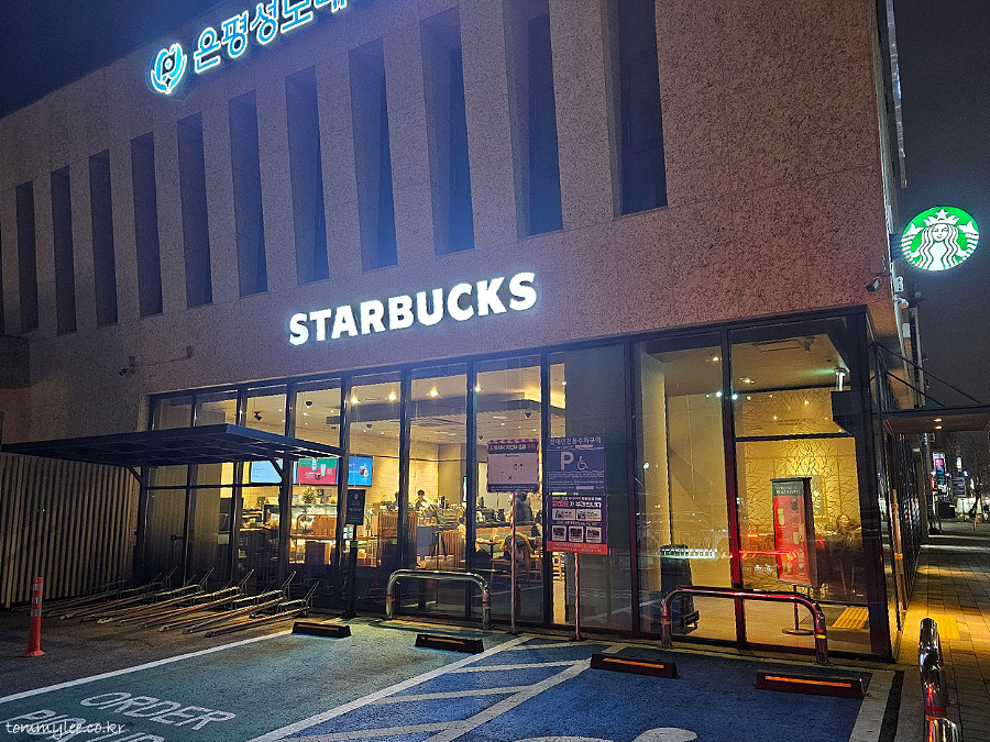 STARBUCKS.. SAEJEOL STATION.. 스타벅스 새절역점.. 영업시간 : 07:30~22:00.. 인근 응암역점은 주차가 불가하지만 여긴 주차가능 매장입니다..