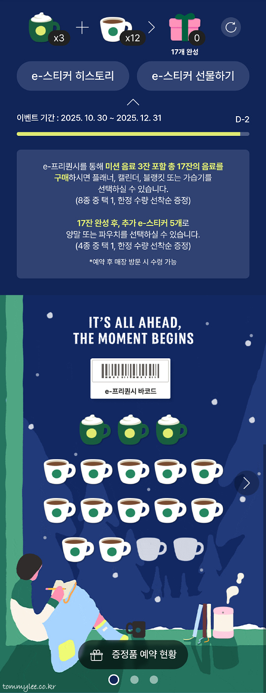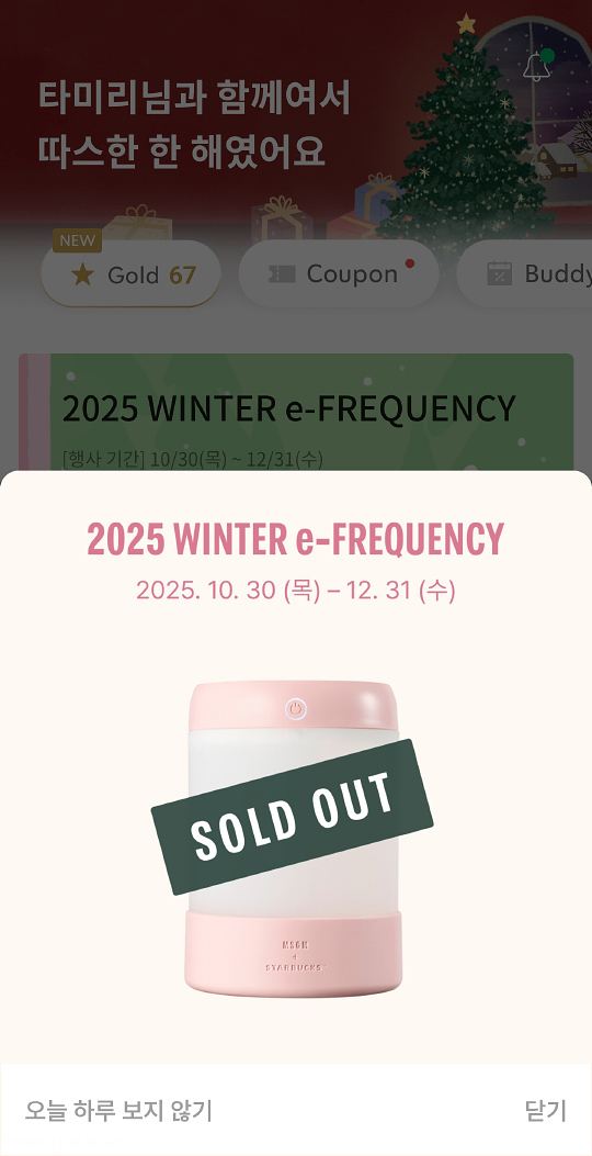 지인분께서 별 12개 적립 무료음료 쿠폰 2장이나 흔쾌히 넘겨주셔서 오랜만에 지인분들과 스타벅스를 찾게 되었답니다.. 2025 윈터 E프리퀀시 완성도 얼마 남지 않아서 겸사겸사 찾게 되었네요..