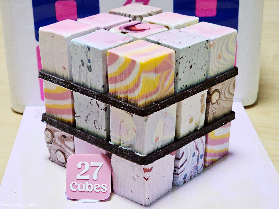 배스킨라빈스 코리아에만 있다는 한국한정 아이스크림 케이크 골라먹는 27 큐브의 모습.. 큐브형 케이크의 기본형으로 보시면 될 것 같고요.. 가격도 2만원대로 가장 저렴했답니다..