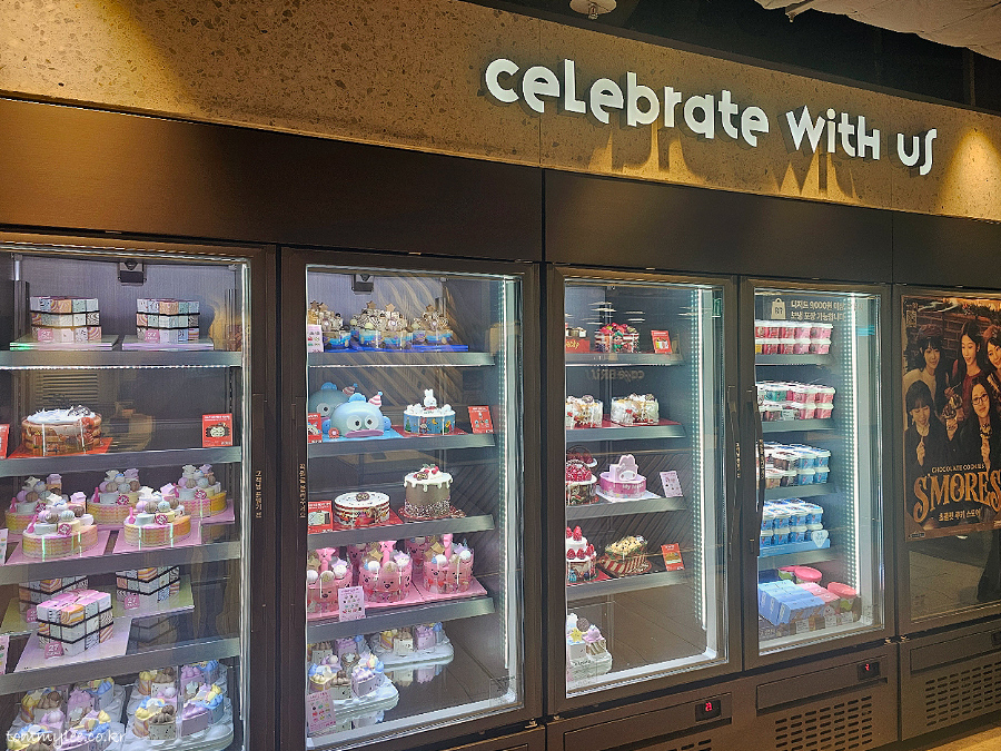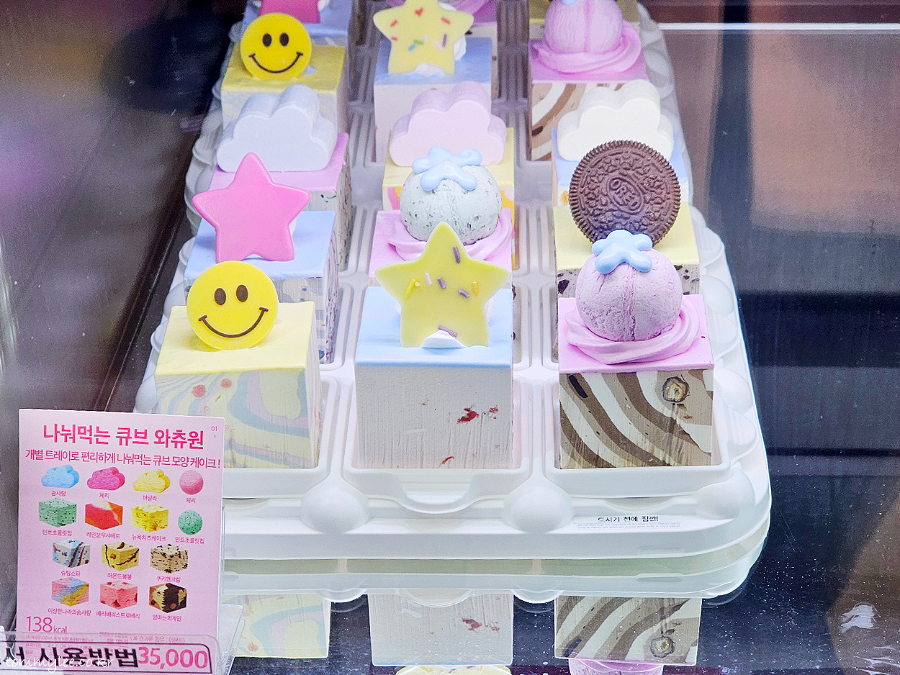조던 하울렛 동영상에서 봤던 그 모습 그대로의 골라먹는 27 큐브 케이크가 디스플레이 되어 있는 훈훈한 모습.. 냉동고 위에도 있고 아래에도 또 있었는데.. 제 케이크는 보이지 않았던 다른 냉동고에서 꺼내 주심.. 크리스마스에 연말연초인지라 케이크가 많이 팔리긴 하나 봄.. ㅋㅋㅋ..