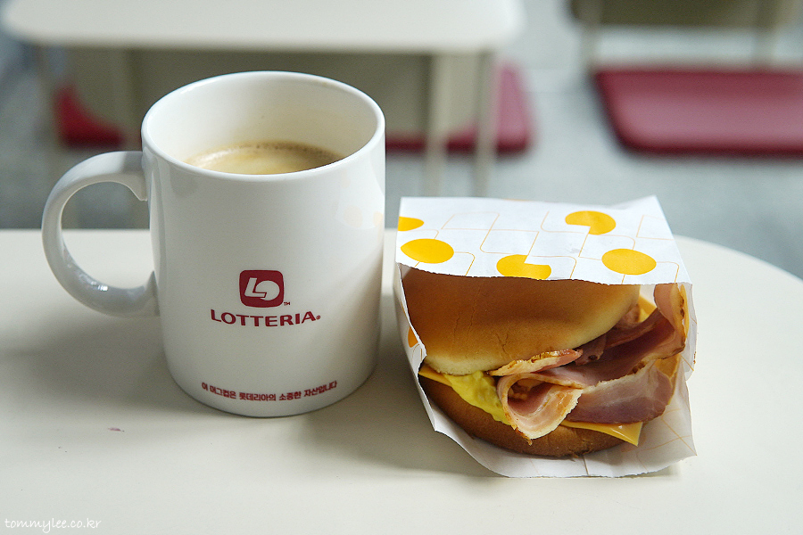 베이컨 에그번이 의외로 맛이 없어서 충격적이었던.. 홍대 롯데리아 리아모닝이었네요..