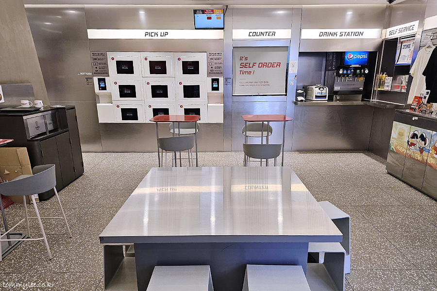픽업박스에서 영수증 바코드 스캔 후.. 지정해 준 번호의 박스로 가서 똑똑하면 문이 열리면서 주문한 메뉴를 받을 수 있게 된답니다..