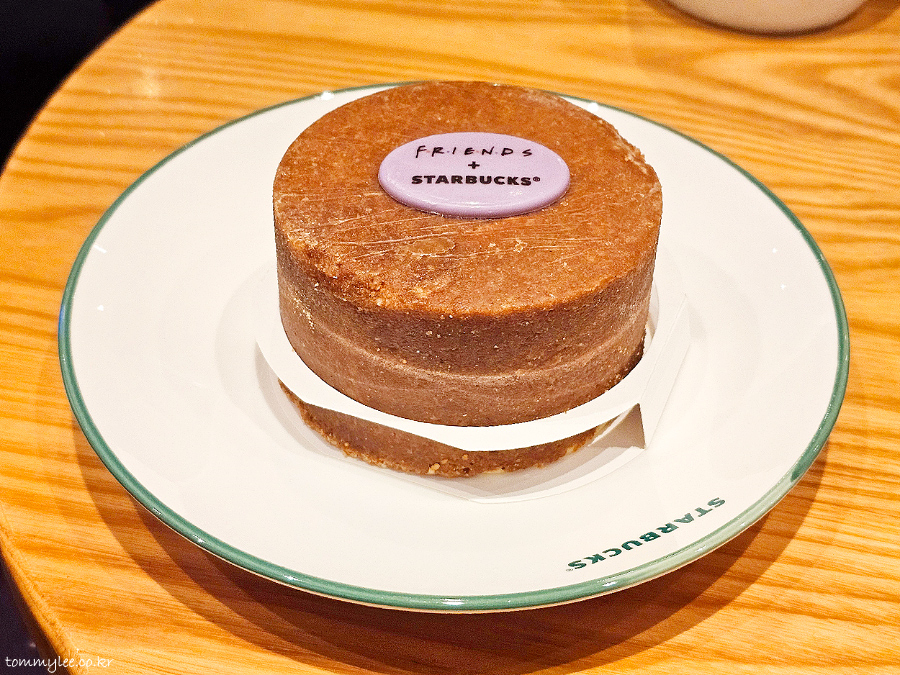 프렌즈에 나온 치즈케이크와는 많이 다른 비주얼입니다.. 스타벅스 프렌즈 버전은 그래함 쿠키가 바닥뿐만 아니라 케이크 전체를 감싸고 있어 치즈타르트에 더 가까운 느낌이라 아쉬운..