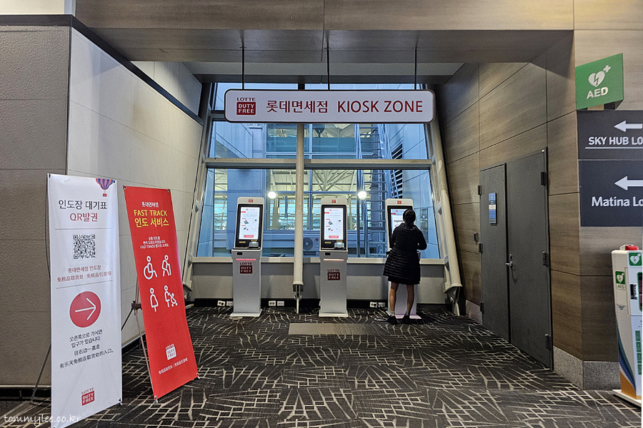 이번에는 롯데면세점만 이용했습니다.. 인도장 대기표 QR발권이라고 쓰여있네요..