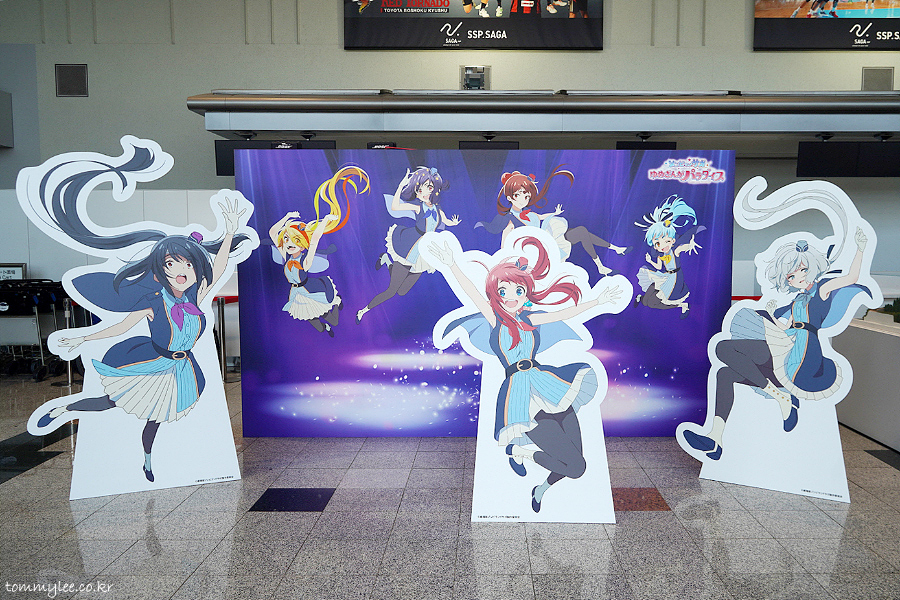 세관은 별다른 거 없이 그냥 통과 했고요.. 바로 밖으로 나올 수가 있었답니다.. 좀비랜드 사가 시리즈 극장판 애니메이션인 유메긴가 파라다이스가 반겨주었던 큐슈사가국제공항 터미널입니다.. 좀비랜드 사가를 아시는 분들이 과연 몇 이나 될런지는 의문이지만.. 그래도 전국적인 인지도가 있고 많이 유명하긴 합니다.. ㅡㅡㅋ..