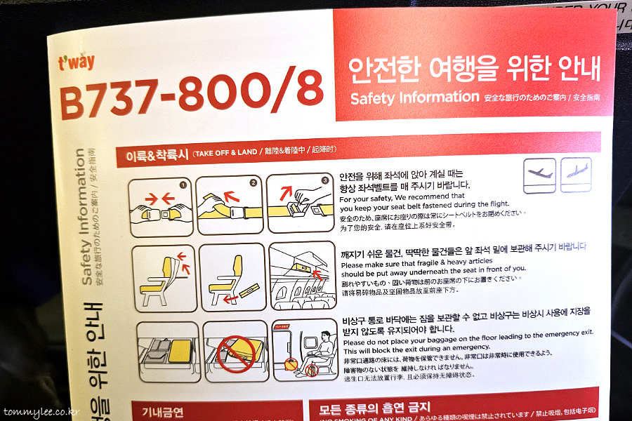 티웨이는 어제 모바일 체크인을 했는데요.. 덕분에 엄청 앞쪽 자리에 앉을 수 있었어요.. 물론 통로, 창가도 아닌 가운데 자리라서 조금 불편하긴 했는데.. 지인분께서 입국 심사를 남들보다 빨리 받는 걸 무지 중요시 하신답니다.. 그래서 어쩔 수 없어요..