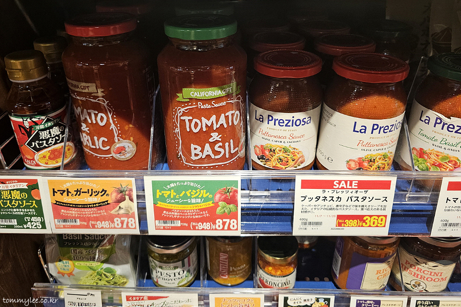 캘리포니아 기프트.. 파스타 소스 토마토 앤 바질.. 948엔(8,911원).. 라프레지오자.. 푸타네스카 파스타 소스.. 398엔(3,741원)..