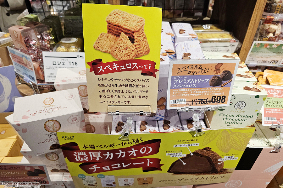 칼디 대부분의 상품은 카타카나로만 단독 표기하는데요.. 이게 전 조금 보기가 힘들어서.. 스페큘러스를 스페큐로스 정도로 해주는 건 그래도 양호한 편인데.. 한참을 생각해야 하는 것들이 종종 있어요.. ㅋㅋㅋ.. 가발니.. 프리미엄 트러플 스페큘러스.. 753엔(7,078원)..