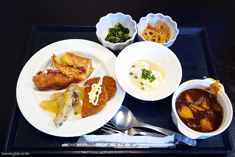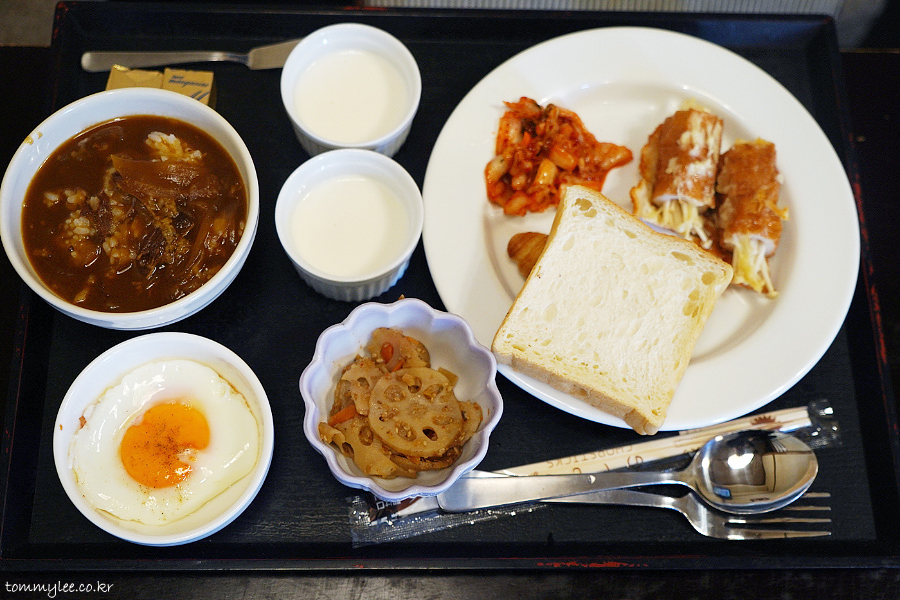 저는 약간 일본풍으로 가져와봤어요.. 온천은 아니지만 호텔에 대욕장이 크게 있어서 아침에 일어나자마자 이용했더니 유토후를 먹고 싶었거든요.. ㅡㅡㅋ..