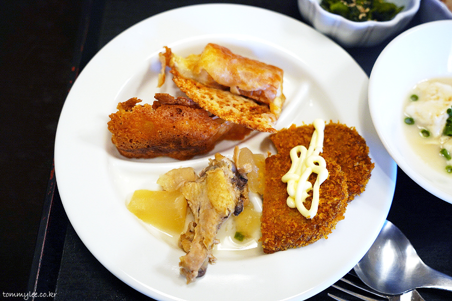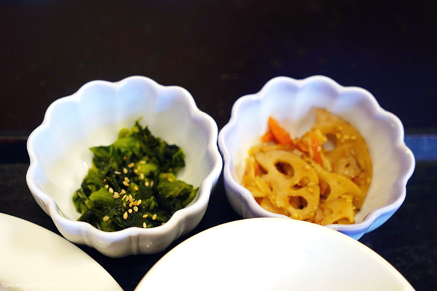 시금치 무침의 의외로 한국 나물풍이었고요.. 렌콘닌진도 맛나고..