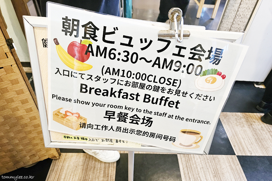조식뷔페회장이라고 써있고 이용시간은 06:00~09:00이라고 합니다.. 10시까지 오픈은 하는데요.. 음식을 9시에 치운다고 하더라고요.. 근데 왜 한국어만 없는 거지??..