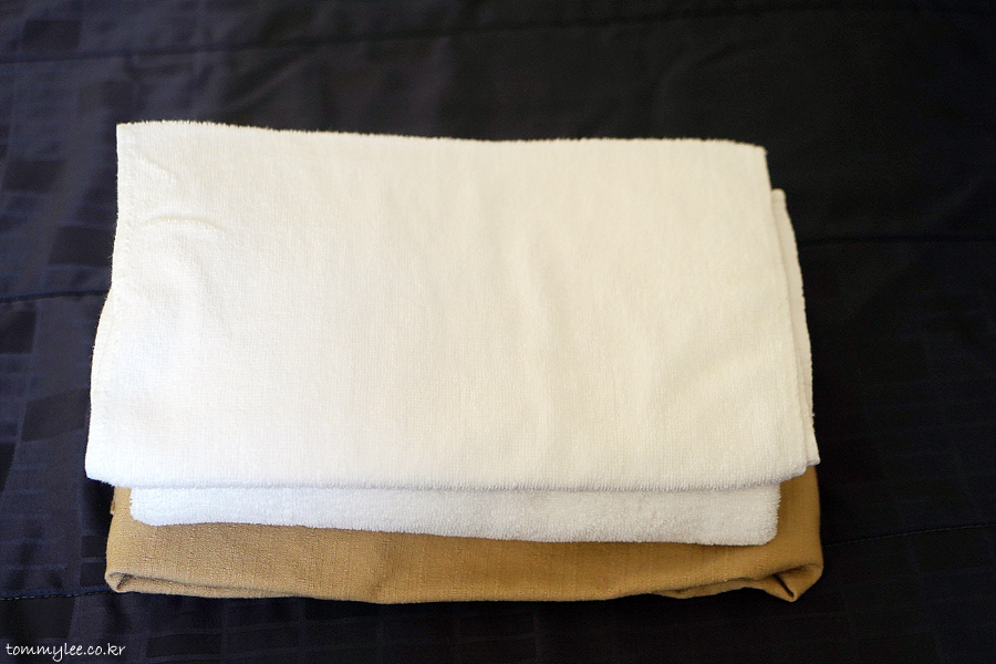 배쓰타올과 페이스타올, 파자마가 침대 위에 올려져 있었습니다.. 2층에 대욕장이 있는데요.. 수건이 없다고 객실에서 가져가야 이용할 수 있다고 합니다..