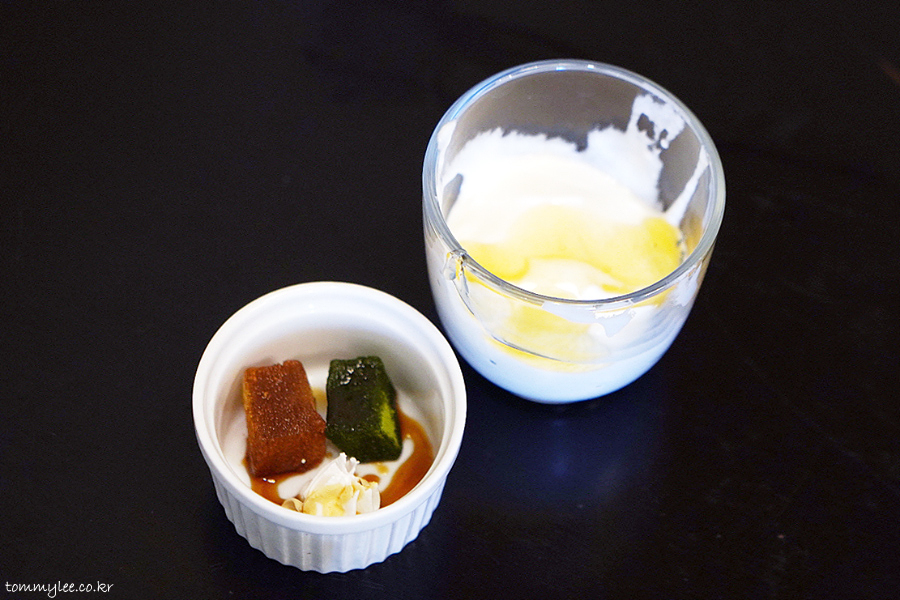 없을 줄 알았던 디저트도 의외로 준비되어 있었음.. 카라멜 소스에 휘핑크림 살짝, 젤리같은 모찌.. 꿀을 듬뿍 토핑한 자가제 요거트 냠냠므..