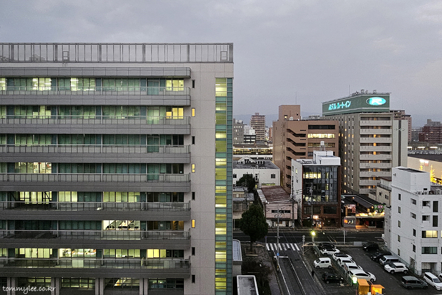 10층이라 호텔뷰가 어떨지 기대가 되었답니다.. 사가역 방향 뷰였는데요.. 딱 호텔 정면에 호텔과 같은 높이의 아이스퀘어란 오피스 빌딩이 있어서 뷰가 거의 없다시피 했네요.. ㅡㅡㅋ..