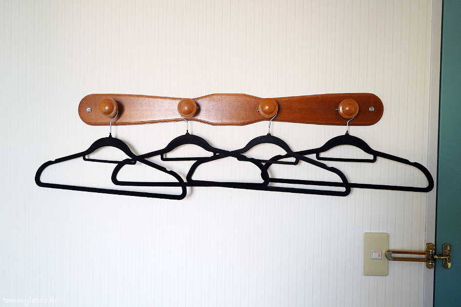객실 크기가 작은만큼 옷장은 따로 없고요.. 벽에 있는 옷걸이 이용해야 합니다..